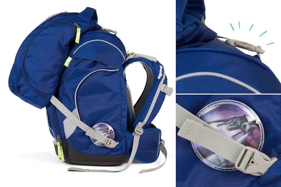 ergobag pack-sportsrygsækken er en helt speciel skoletaske, der opbevarer alle sportssagerne perfekt! Det store hovedrum har rigeligt plads til bluse, sportsbukser og sportssko eller udstyr til svømmetimerne. Det ekstra rum til våde ting er udstyret med regnfrakkestof - her kan du efter svømmetimen opbevare dit badetøj, uden at tingene i hovedrummet bliver våde. Yderlommen i netstof har plads til en ekstra drikkedunk. Det elastiske bånd holder flasken fast og kan justeres i størrelsen, så alle børn så rigeligt kan blive forsynet med drikkevarer. Som med din ergobag kan du også indstille din sportsrygsæk individuelt. Velcrofladen giver alle små kreative sjæle plads til en klettie efter eget valg – hvad end de selv fremstiller den eller har fundet den i én af vores mere end 30 Klettie-sæt. Selvfølgelig er sportsrygsækken også en herlig følgesvend til fritidssport eller korte udflugter! De brede refleksbånd sikrer god synlighed - selv i skumringen eller tidligt om morgenen.