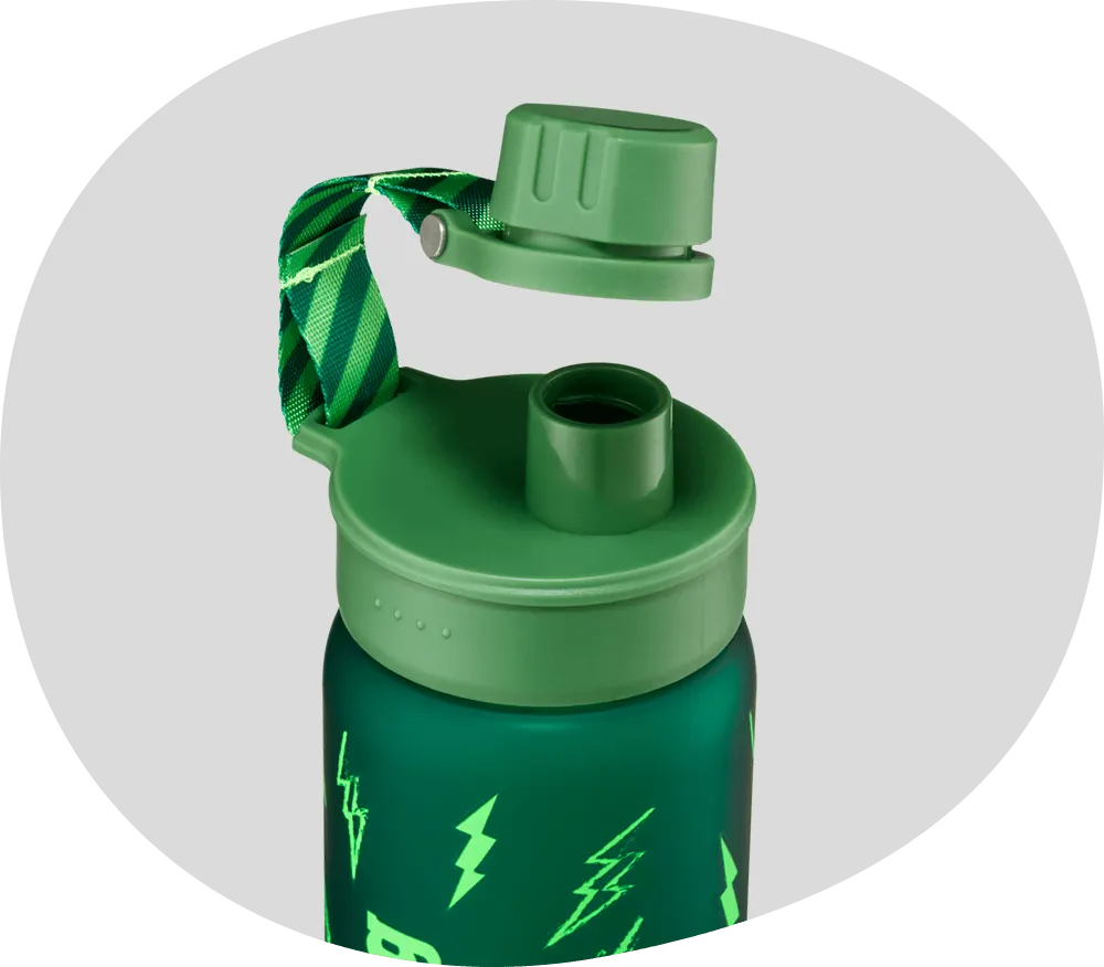 Vores praktiske drikkeflasker rummer en halv liter væske og passer derfor perfekt i sidelommerne på vores skoletasker. De testes regelmæssigt for skadelige stoffer og opfylder de lovmæssige krav. De kan også rengøres i opvaskemaskinen ved op til 65 °C, men vi anbefaler stadig håndvask. Fås i mange forskellige farver.