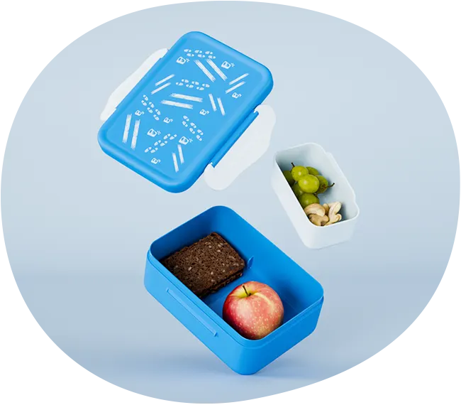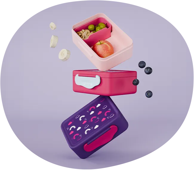 Madkassen kan tilpasses med den udtagelige rumdeler. Sættet i 2 dele sikrer organisering og alsidige snackmuligheder!