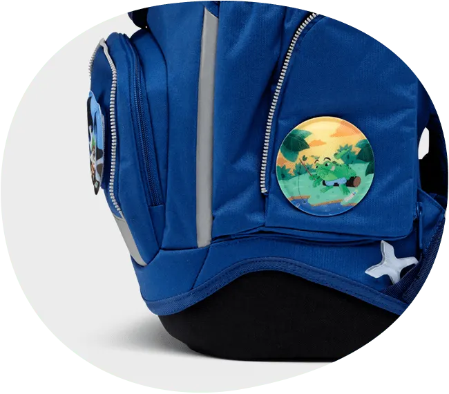 Børnene har altid overblik i hovedrummet med bogkasse. Det fleksible bogrum holder tunge skolebøger tæt på ryggen. Værdigenstande finder et sikkert sted i netlommen med nøglering, og penalhuset er altid lige ved hånden i lågrummet med lynlås.