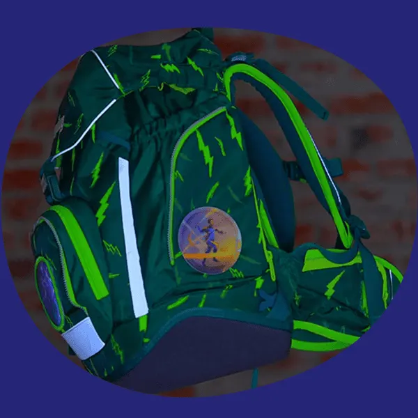 Reflektormaterial ist rundherum an unseren Schultaschen angebracht. Sie umrahmen den Rucksack, sodass seine Kontur auch im Dunkeln erkennbar ist. Es gibt auch Special Editions in NEO-Farben oder mit zusätzlich reflektierendem Muster.