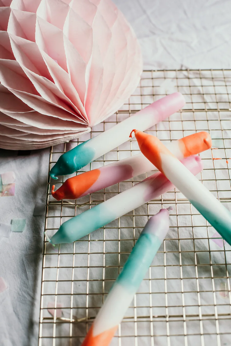 Nun legt ihr einfach die Kerzen zum Trocknen auf ein Gitter oder auch auf Backpapier.