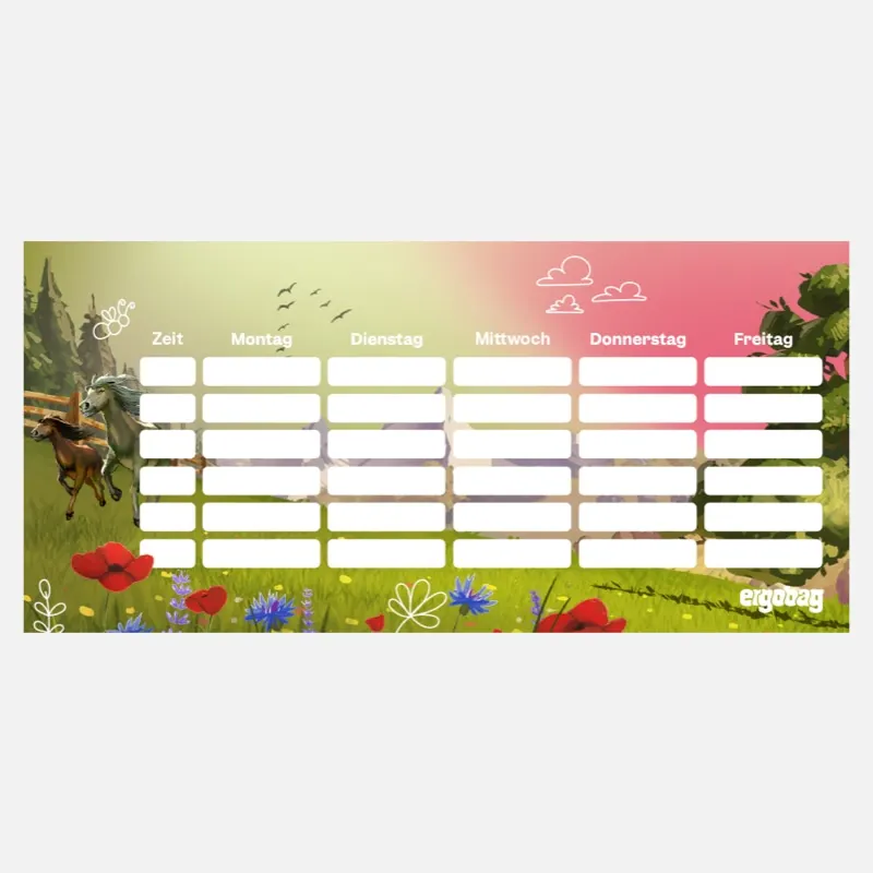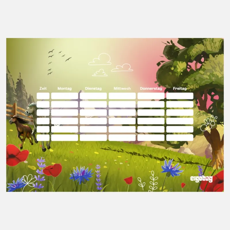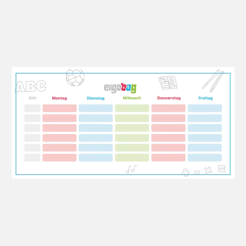 Um unkompliziert an das wichtige Dokument zu gelangen, habt Ihr hier die Möglichkeit, die wiederverwendbaren Grafiken per Download zu speichern. Passend für stylische Schulranzen wie ergobag tragen die Schulkalender zum gut strukturierten Schulleben bei. Zwei Vorlagen stehen Euch zur Verfügung, in die Ihr alle wichtigen Zeiten eintragt. Ein Exemplar könnt Ihr in den Schulrucksack bzw. in das Federmäppchen packen ein anderes auf dem Schreibtisch Eures Kindes platzieren. Einen weiterer Stundenplan kann gut sichtbar für alle an einer Pinnwand oder, wie in vielen Familien üblich, am Kühlschrank befestigt werden.