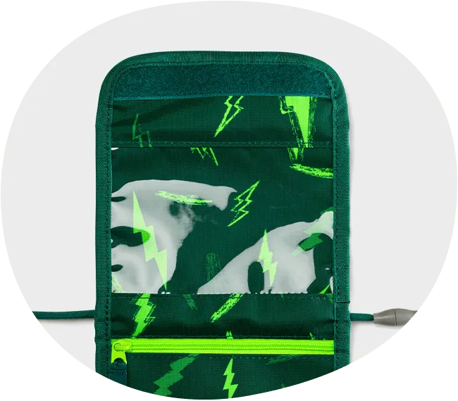 Im Sichtfenster kann beispielsweise die Busfahrkarte aufbewahrt werden. So ist sie immer zur Hand, ohne dass der Brustbeutel geöffnet werden muss.