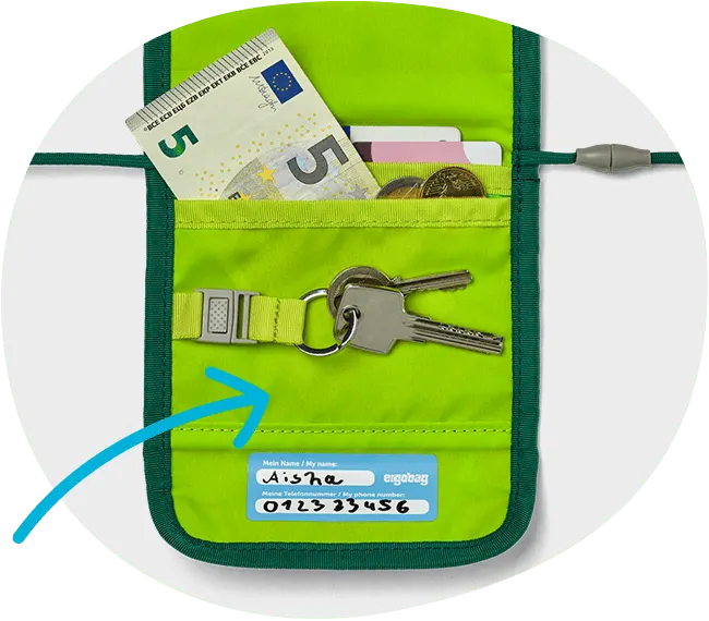Der Haustürschlüssel ist am Schlüsselring im Brustbeutel super verstaut: Schnell zur Hand und kann nicht verloren gehen!