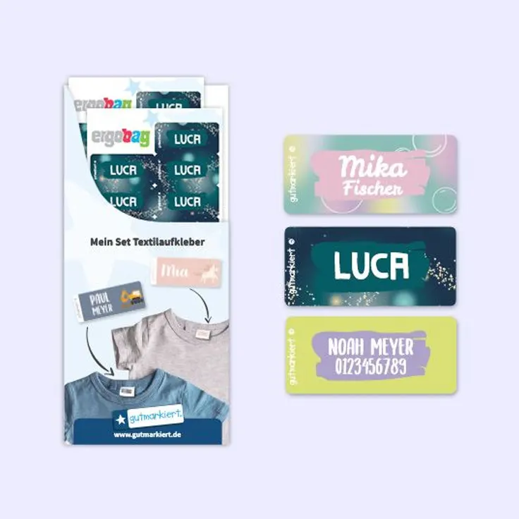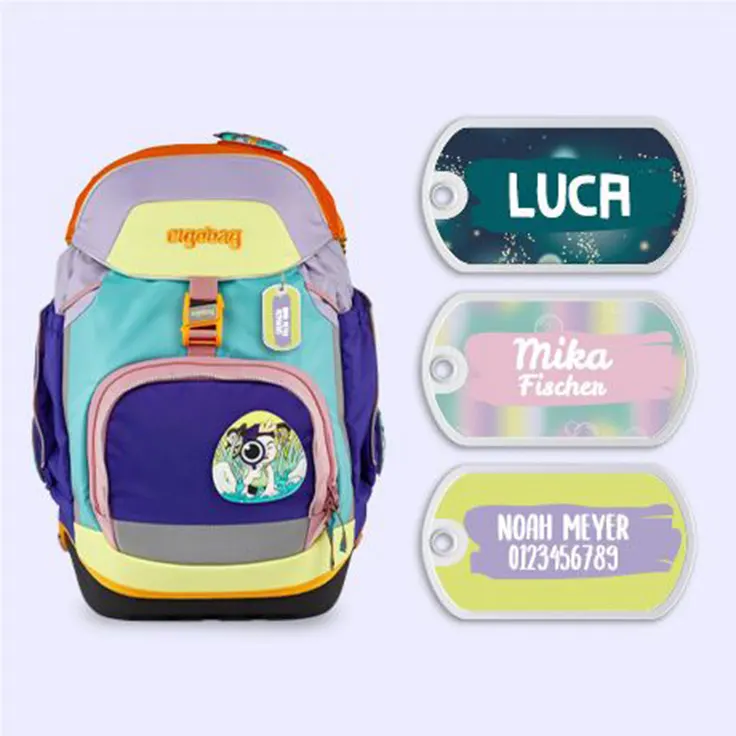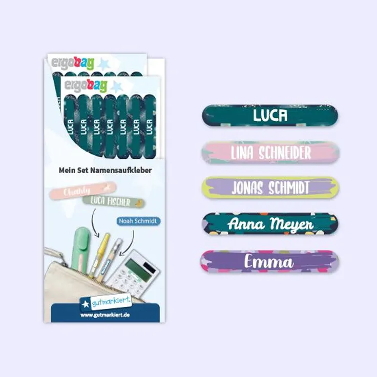 Personalisiere deine ergobag Produkte mit passenden Aufklebern und Anhängern. Namensaufkleber für Brotdosen, Trinkflaschen oder Bücher, Taschenanhänger für deinen Schulrucksack oder Textilaufkleber für Kleidung und Schuhe.