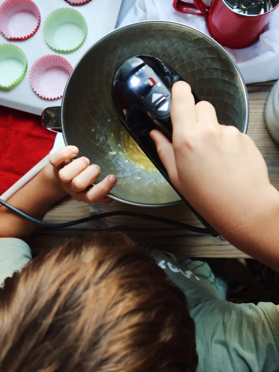 5. Line a muffin baking tray with muffin cases and then fill the cases halfway with the batter.