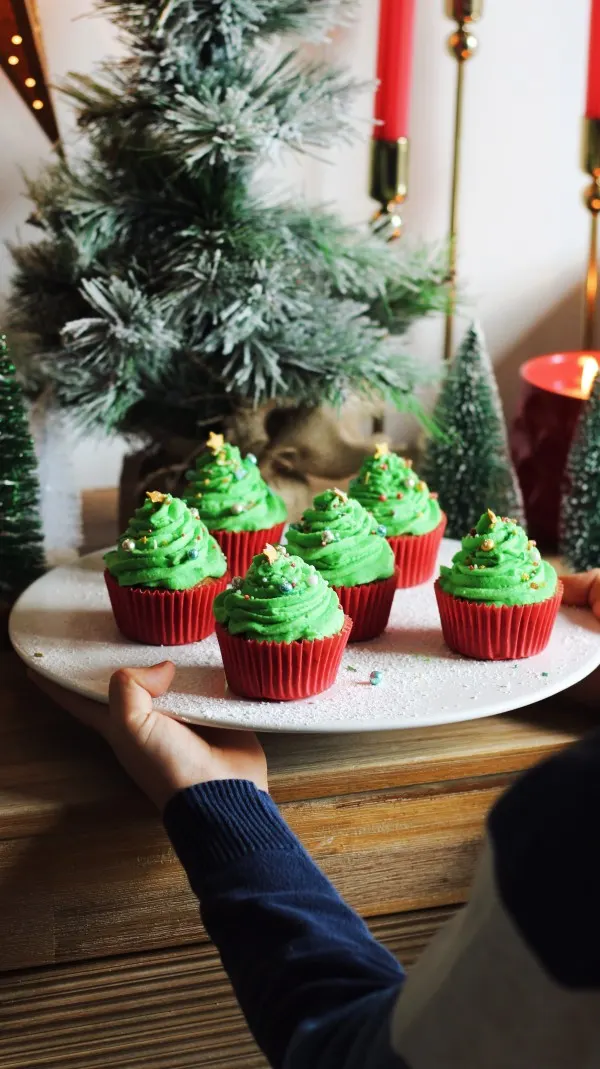 Is there a Christmas party at school or daycare or would you like to bake a simple Christmas recipe with your children without having to spend hours preparing cookies in the kitchen? Then these simple and super-sweet Christmas tree cupcakes are just the thing. Easy to make and incredibly delicious! A guest post by Sabrina from “Starlights in the Kitchen”.