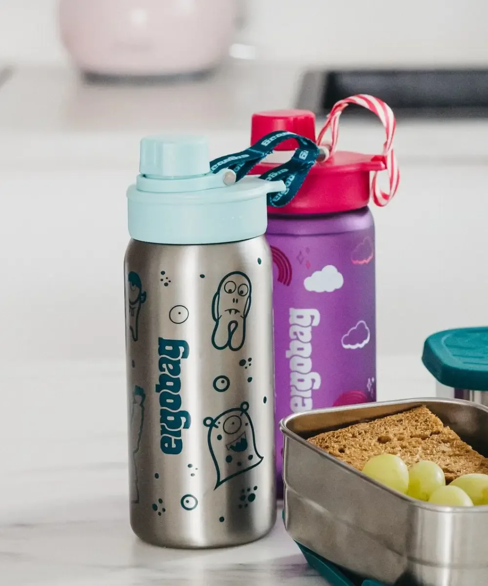 The ergobag drinks bottle is ultralight and yet still robust. Ideal for carbonated drinks, it can even hold hot beverages at temperatures of up to 80° C and is dishwasher-safe. The plastic remains free of odors at all times. In addition, our bottles are BPA free. A daily dose of half a liter of your favorite drink will fit in the bottle in the design of your ergobag! This ergobag drinking bottle made of brushed stainless steel holds 0.5 liters, fits perfectly in the ergobag breakfast compartment and is suitable for still and cold drinks.