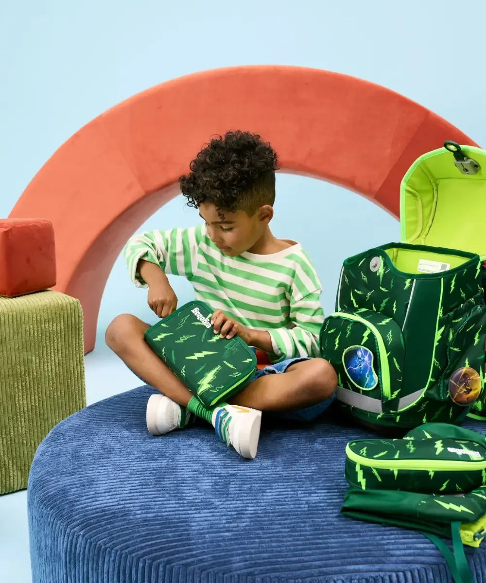 All your pens and pencils can be clearly arranged in the ergobag pencil case. The fold-out classic and constant companion in daily school life comes in many different designs to match every ergobag school backpack. The pencil case already contains 17 crayons, an eraser, ruler, sharpener and timetable. There is also a really practical small pocket in the pencil case to keep all those important little things safe. It is produced with textiles made entirely from recycled PET bottles.