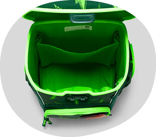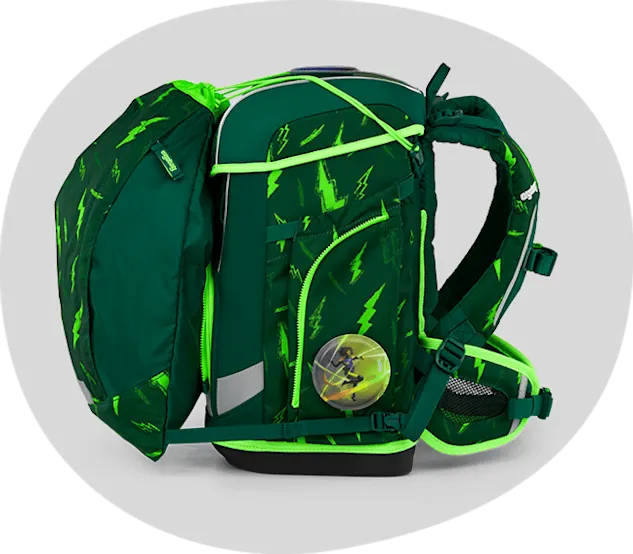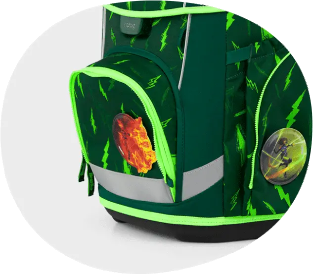 The school bag is generously equipped with reflectors all around to make it visible from all sides. Zip sets in neon colors or with additional reflectors can be attached as well.
