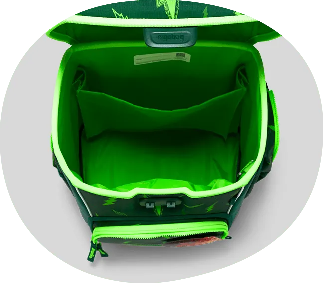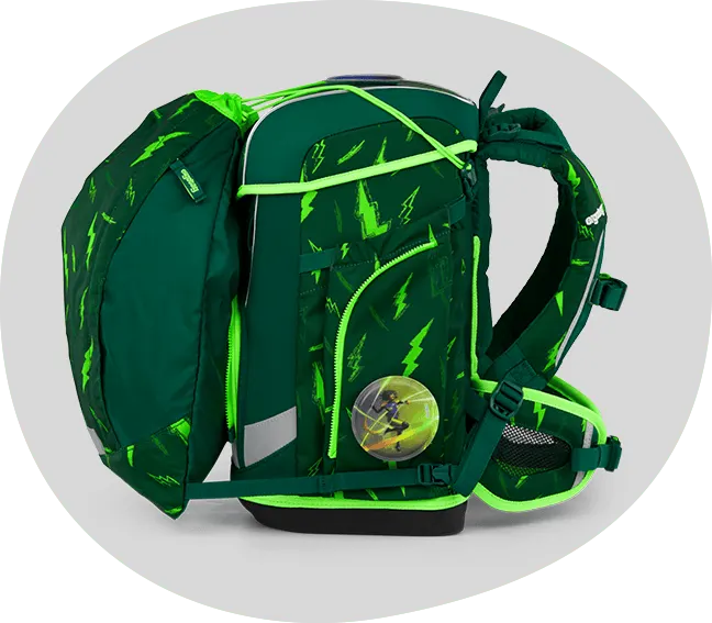 The school bag is generously equipped with reflectors all around to make it visible from all sides. Zip sets in neon colors or with additional reflectors can be attached as well.