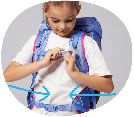 Close the chest strap at a comfortable height and tighten. This prevents the straps from sliding off the shoulders.