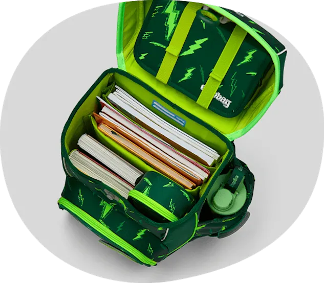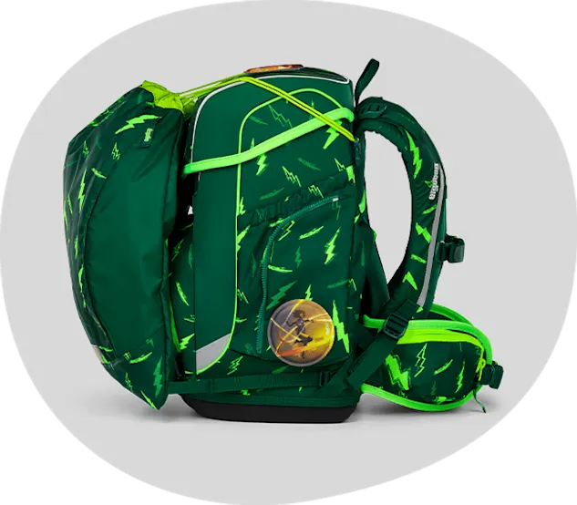 The school bag is generously equipped with reflectors all around to make it visible from all sides. Zip sets in neon colors or with additional reflectors can be attached as well.