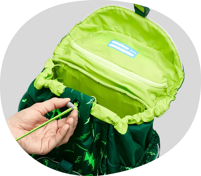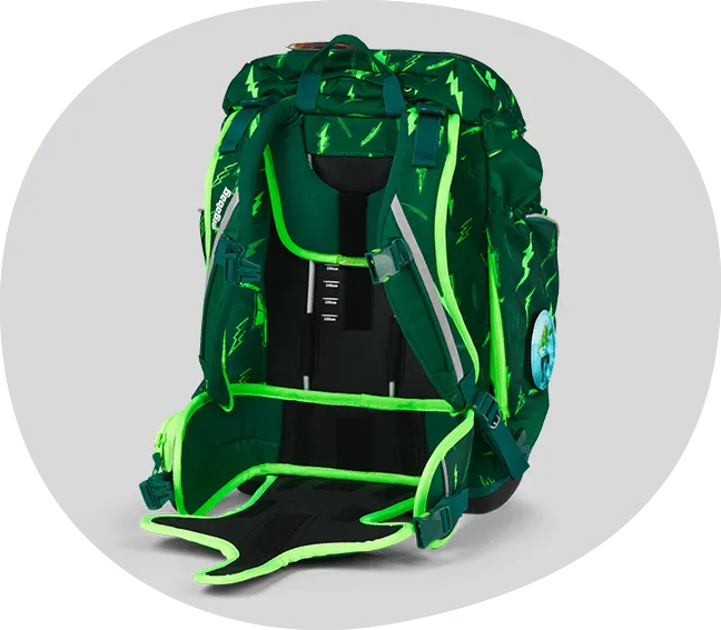 Reach for new heights with the ergobag maxi: The "Your Size System" lets the school backpack grow along with children throughout early elementary school – from 3'11" to 5'7". The clever drawstring system draws the weight even closer to the child's body, reducing back strain. Practical front and side pockets and clever interior dividers help kids keep track of their stuff. The sporty design is based on our original, the pack. The sturdy, waterproof base protects books and worksheets from even the biggest puddles.