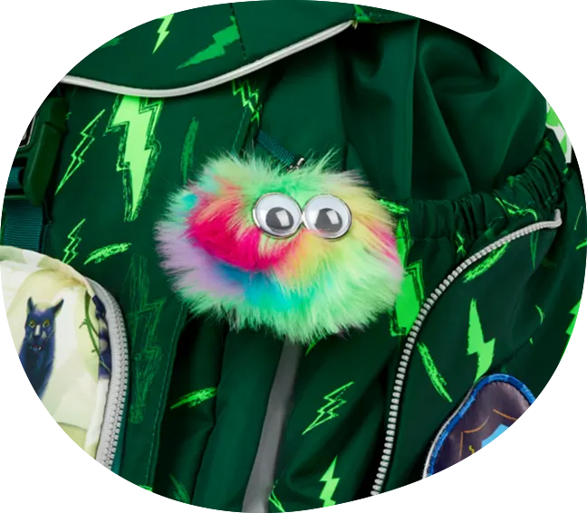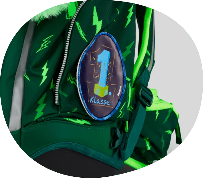 A total of four Velcro surfaces for the colourful Kletties are attached to the school bag. This means that every child has a unique backpack that can be changed and personalised as desired.