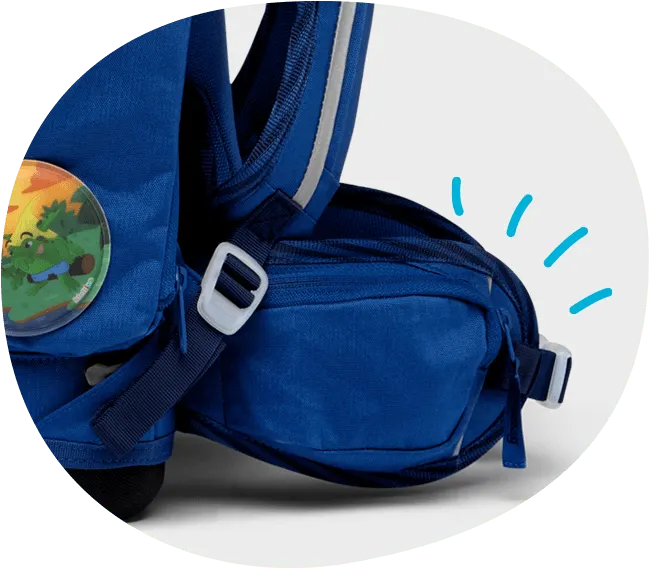 Nelle tasche laterali c'è spazio per una bottiglia d'acqua o un ombrello. Così il bambino può accedere rapidamente e facilmente alle cose più importanti quando ne ha bisogno.